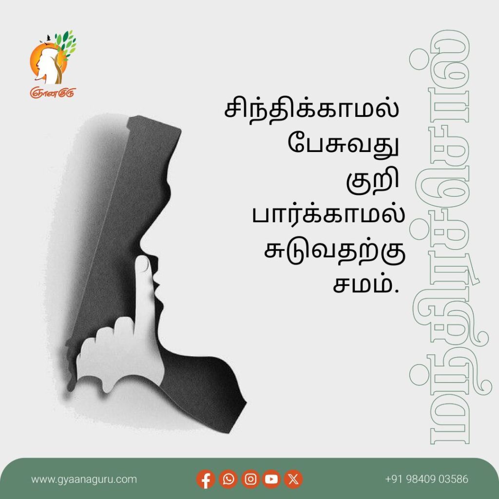 காய்ந்துகிடக்கும் பொட்டல் காட்டில் ஒரே ஒரு மழையில் ஒட்டுமொத்த புற்களும் வளர்ந்துவிடும். அப்படித் தான் சின்னச்சின்ன வார்த்தைகள் மனிதர்களின் வாழ்க்கையையும் மனநிலையையும் மாற்றிவிடக் கூடும். பேசிய வார்த்தைகளுக்கு நீங்களே பொறுப்பு.