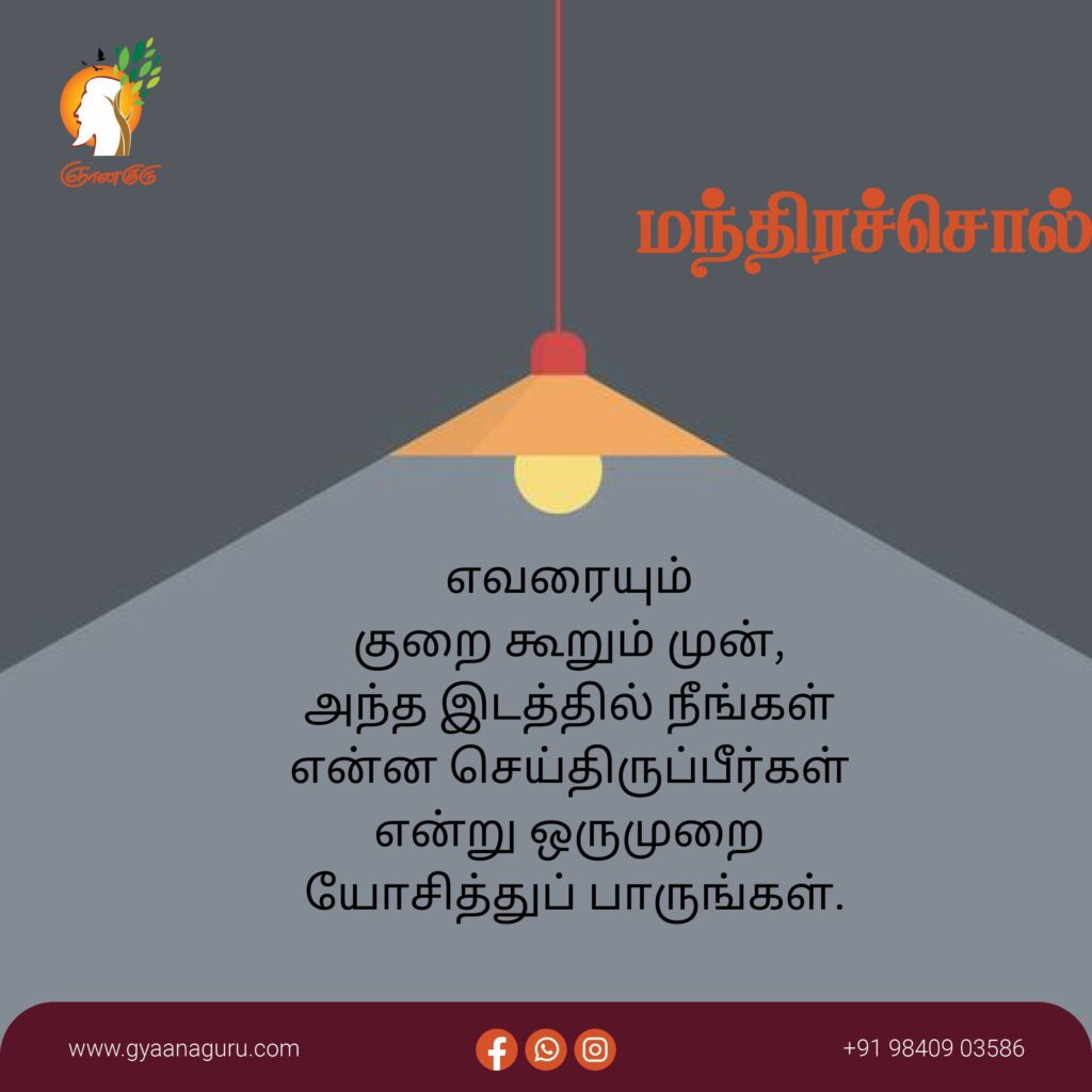 காய்ந்துகிடக்கும் பொட்டல் காட்டில் ஒரே ஒரு மழையில் ஒட்டுமொத்த புற்களும் வளர்ந்துவிடும். அப்படித் தான் சின்னச்சின்ன வார்த்தைகள் மனிதர்களின் வாழ்க்கையையும் மனநிலையையும் மாற்றிவிடக் கூடும். பேசிய வார்த்தைகளுக்கு நீங்களே பொறுப்பு.
