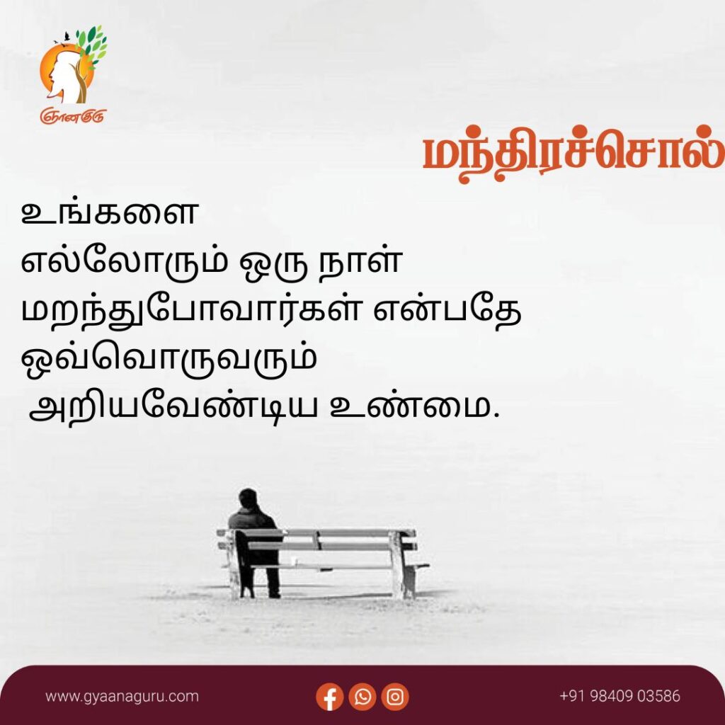 காய்ந்துகிடக்கும் பொட்டல் காட்டில் ஒரே ஒரு மழையில் ஒட்டுமொத்த புற்களும் வளர்ந்துவிடும். அப்படித் தான் சின்னச்சின்ன வார்த்தைகள் மனிதர்களின் வாழ்க்கையையும் மனநிலையையும் மாற்றிவிடக் கூடும். பேசிய வார்த்தைகளுக்கு நீங்களே பொறுப்பு.